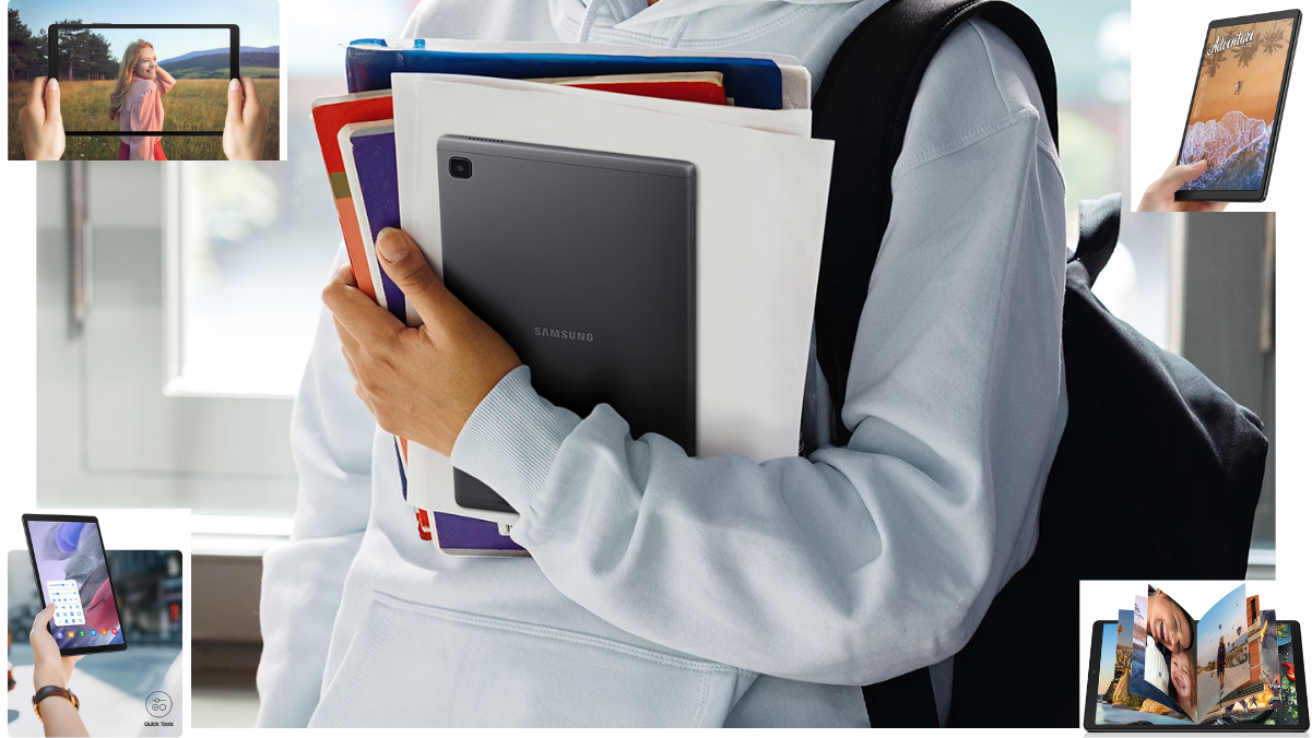 Primero, hablemos de su diseño. La Galaxy Tab A7 Lite es sumamente portátil, con un grosor de solo 8 mm y un peso de 366 g, lo que la hace ideal para llevar a todas partes sin esfuerzo. Su elegante acabado en gris metálico no solo atrae miradas, sino que también ofrece durabilidad y un estilo que no compromete la comodidad. Además, su pantalla de 8,7 pulgadas con biseles reducidos maximiza la experiencia visual sin aumentar el tamaño del dispositivo, permitiendo disfrutar de películas y juegos con una calidad y comodidad impresionantes.